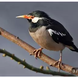 灰椋鸟(学名:Sturnus cineraceus):是雀形目椋鸟科的物种,体型较北椋鸟稍大,头顶至后颈黑色,额和头顶杂有白色,颊和耳覆羽白色微杂有黑色纵纹。上体灰褐色,尾上覆羽白色,嘴橙红色,尖端黑色,脚橙黄色。