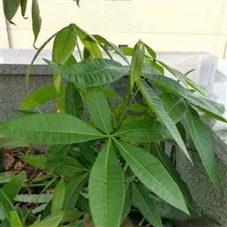 瓜栗 Walp. ),俗称发财树,木棉科小乔木,高4-5米,树冠较松散,幼枝栗褐色,无毛。小叶具…