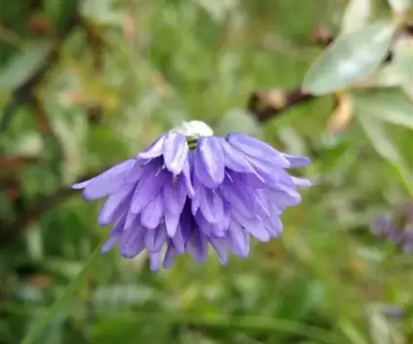 鳞茎数枚聚生,圆柱状,粗0.3-0.5厘米;鳞茎外皮暗褐色,破裂成纤维状,下部近网状,稀条状破裂。叶狭条形,扁平,比花葶短,宽2-5毫米。花葶圆柱状,高15-40厘米,有时矮到5厘米,下部被叶鞘;总苞单侧开裂,早落;伞形花序半球状,具多而密集的花;小花梗近等长,比花被片短或与其等长,基部无小苞片;花钟状,天蓝色;花被片卵形或卵状矩圆形,先端钝,长6-10毫米,宽3-4.5毫米,内轮的边缘常具1至数枚疏离的不规则小齿,且常比外轮的稍长而宽;花丝等长,为花被片长度的1/2-2/3,基部合生并与花被片贴生,合生部分高约1毫米,内轮的基部扩大,有时每侧各具1齿,外轮的基部也常扩大,有时每侧亦各具1齿;子房近球状,腹缝线基部具明显的有窄帘的凹陷蜜穴;花柱比子房短或近等长。花果期7-9月。 该种以条形、扁平的叶,天蓝色的花,花丝比花被片短,花被片卵形至卵状矩圆形,内轮边缘常具小齿而易被识别。