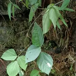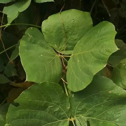 藤本;块根肥厚;各部有黄色长硬毛。小叶3,顶生小叶菱状卵形,长5.5-19厘米,宽4.5-18厘米,先端渐尖,基部圆形,有时浅裂,下面有粉箱,两面有毛,侧生小叶宽卵形,有时有裂片,基部斜形;托叶盾形,小托叶针状。