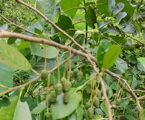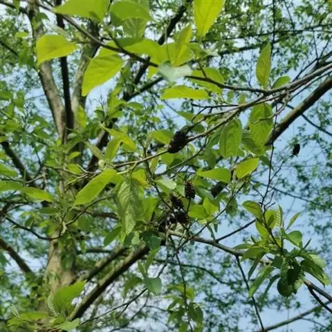 雄花序单生,长3-4厘米。果序单生于叶腋,矩圆形,长1-3.5厘 米,直径5-20毫米;序梗细瘦,柔软,下垂,长4-8厘米,无毛,很少于幼时被短柔毛;果 苞木质,长4-5毫米,顶端具5枚浅裂片。小坚果卵形,长约3毫米,膜质翅宽仅为果的 1/2。 [1-2]