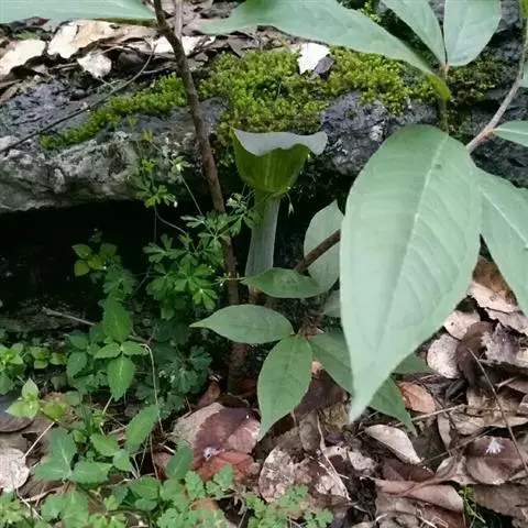 黄苞南星 Schott)是天南星科、天南星属植物,块茎近球形,鳞叶锐尖,叶片鸟足状分裂,…