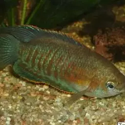 明显的五道黑色竖纹 也称赤鲈、五道黑,隶属于鲈形目鲈亚日鲈科鲈属。河鲈体侧扁,呈长椭圆状,头尖、小,略呈三角形;体呈棕褐色,背部颜色较深,体侧从第一背鳍起点至第二背鳍末有5条较宽的黑斑,腹部颜色灰白。