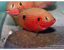 体黄褐色,具斑纹和斑点。吻侧、眼下、眼间隔和头侧具褐色条纹。鳃盖膜橘红色。体侧在背鳍第二至第四鳍棘下方具1条纹,伸达鳃孔上角,背鳍第五至第九鳍条下方和最后鳍条下方以及尾鳍基底各具2横纹。背鳍鳍条部,臀鳍、胸鳍和尾鳍具多条点列横纹。臀鳍橘红色。腹鳍白色,无斑纹。
