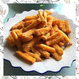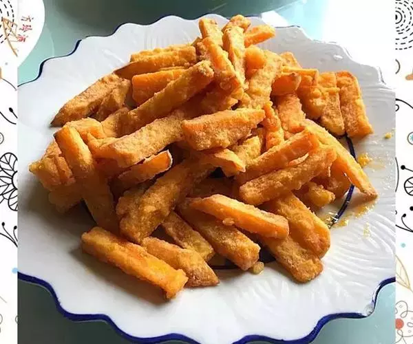 蛋黄焗山药是用山药、鸡蛋、面粉、清水、咸蛋黄、盐制作而成的菜品。
