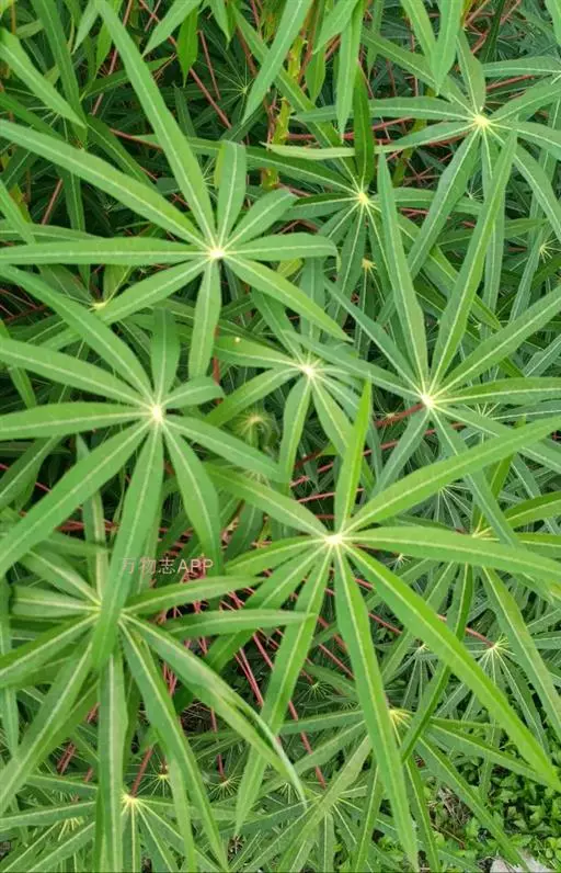 风车草(学名:Cyperus alternifolius L. subsp. flabelliformis (Rottb.) KüKenth.)是莎草科,莎草属多年生草本植物,根状茎短,粗大,高可达150厘米,叶片伞状,叶鞘棕色,叶状苞片苞片20枚,近相等,较花序长,向四周展开,平展;多次复出长侧枝聚繖花序具多数第一次辐射枝,小穗密集,椭圆形或长圆状披针形,鳞片紧密的复瓦状排列,膜质,卵形,苍白色,花药线形,花柱短,小坚果椭圆形,近于三稜形,长为鳞片的1/3,褐色。花两性,花果期8-11月
