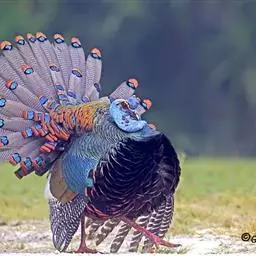 眼斑吐绶鸡:是火鸡科的两种鸟类之一。体型比普通火鸡略小些,体长1米左右,体重2.4-5.4千克,…