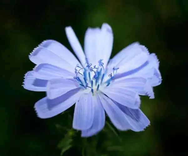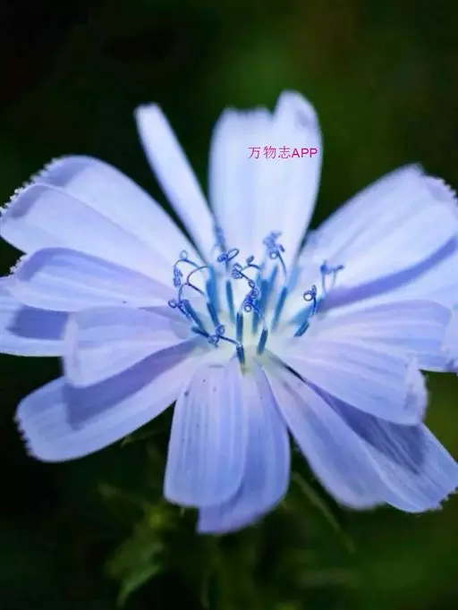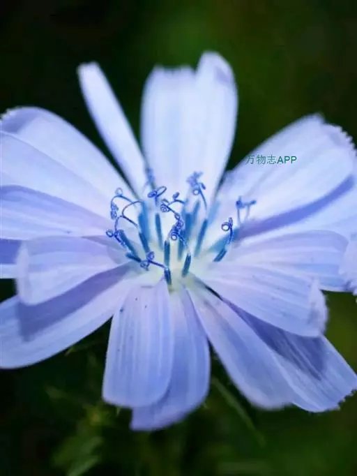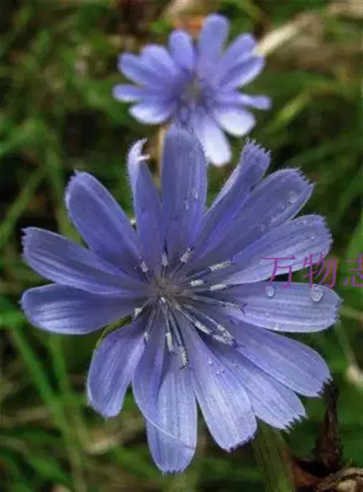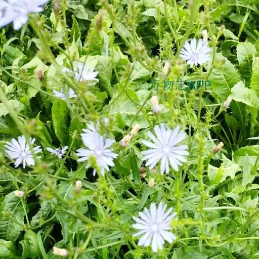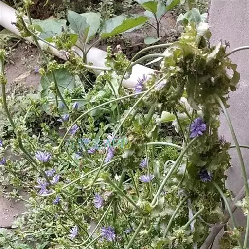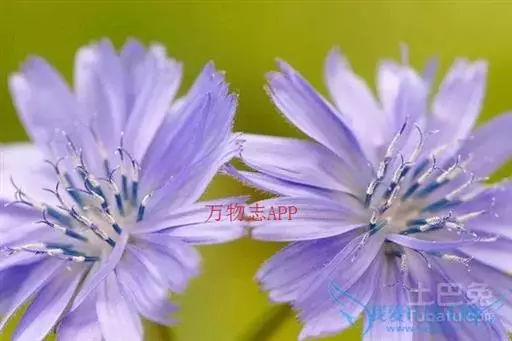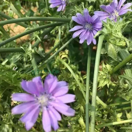 1、毛菊苣:茎呈圆柱形,稍弯曲;表面灰绿色或带紫色,具纵棱,被柔毛或刚毛,断面黄白色,中空。叶多破碎,灰绿色,两面被柔毛;茎中部的完整叶片呈长圆形,基部无柄,半抱茎;向上叶渐小,圆耳状抱茎,边缘有刺状齿。头状花序5~13个成短总状排列。总苞钟状,直径5~6mm;苞片2层,外层稍短或近等长,被毛;舌状花蓝色。瘦果倒卵形,表面有棱及波状纹理,顶端截形,被鳞片状冠毛,长0.8~lmm,棕色或棕褐色,密布黑棕色斑。气微,味咸、微苦。