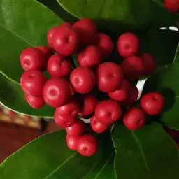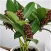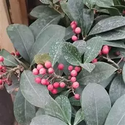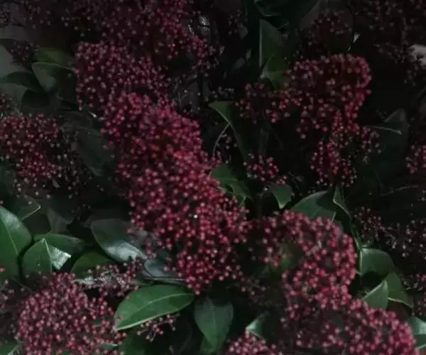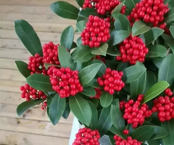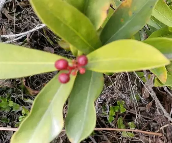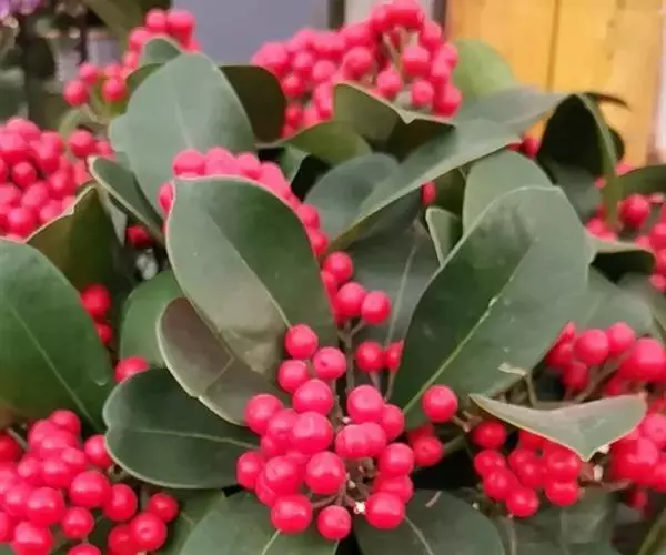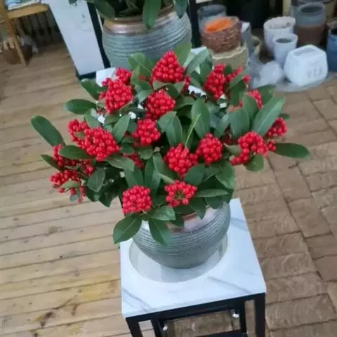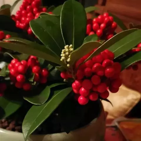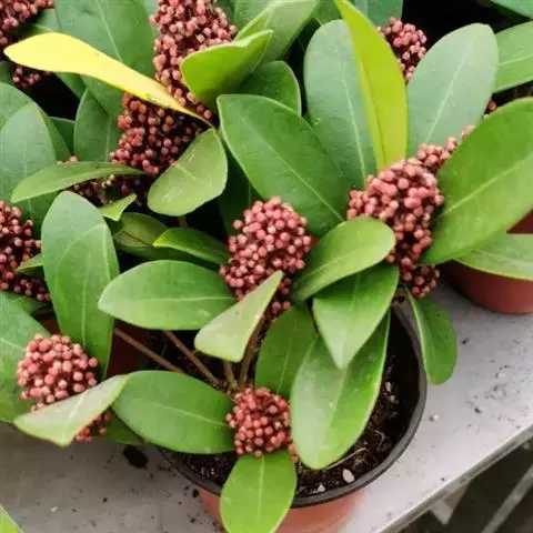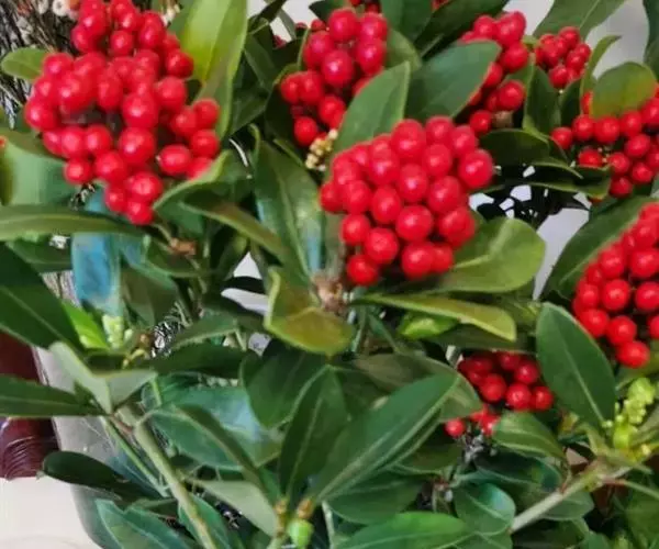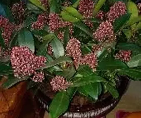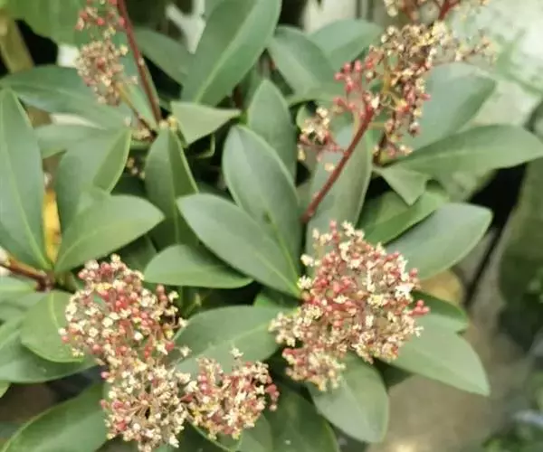茵芋(Skimmia reevesiana (Fortune) Fortune),是芸香科茵芋属的灌木植物。茵芋小枝常中空,皮淡灰绿色,光滑;叶有柑橘叶的香气,革质,集生于枝上部,叶片椭圆形、披针形、卵形或倒披针形,端短钝尖,基部宽楔形;花序轴及花梗均被毛;花密集,芳香,淡黄白色,萼片半圆形,边缘被短毛,花瓣黄白色;果球形、椭圆形或倒卵形;种子扁卵形,具极小窝点;花期3-5月,果期9-11月。茵芋原产中国的喜马拉雅山区至日本一线都有分布,在中国东南沿海各省区,以及湖南、湖北、广西、贵州等省区也有栽培。茵芋喜温暖和阳光照射的环境,也稍耐阴,不耐寒;喜在深厚、肥沃、疏松透气、富含有机质的微酸性土壤中生长。茵芋一般采用播种和扦插的繁殖方式。茵芋的茎、叶可药用;性味辛、苦,温,有祛风除湿的功效。《本经》载:“主五脏邪气,心腹寒热,羸瘦如疟状,发作有时;诸关节风湿痹痛”。茵芋有一定的观赏价值;其繁茂