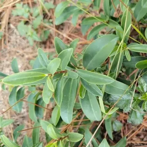 攀援灌木,分枝多;枝条无毛,密布皮孔,幼时多少被微柔毛。叶片坚纸质,稀革质,长圆状卵形或卵形,稀宽披针形,顶端急尖或渐尖,基部圆或钝,稀楔形,长5-10厘米,宽2-4厘米,边缘具细或粗锯齿,有时具重锯齿或几全缘,两面无毛,叶面中脉下凹,背面隆起,侧脉多数,直达齿尖,细脉网状,明显隆起,腺点疏而不明显;叶柄长6-8毫米,具狭翅,多少被微柔毛。总状花序,腋生,长1-2厘米,可达3厘米以上,被微柔毛;花梗长2-3 (-5) 毫米,被乳头状突起;小苞片钻形,长1毫米,里外均被乳头状突起;花5数,长1-2毫米,花萼基部连合,萼片卵形,顶端急尖,长0.7毫米,具缘毛,里外无毛,多少具腺点,有时于萼连合处被微柔毛;花瓣分离,淡绿色或白色,长1-2毫米,卵形或长圆形或椭圆形,顶端钝或圆形,边缘膜质,具缘毛,外面无毛,里面中央尤其是近基部密被微柔毛或乳头状突起,具腺点;雄蕊在雌花中退化,长达花瓣的1/2,在雄花中与花瓣等长或较长,着生于花瓣的1/3处,花丝基部具乳头状突起,花药长圆形或卵形,背部具腺点;雌蕊在雌花中与花瓣等长,子房瓶形或球形,花柱常弯曲,柱头细尖或略展开。果球形,直径4-5毫米,蓝黑色或带红色,具腺点,宿存萼紧贴果。花期10-12月,果期4-7月。