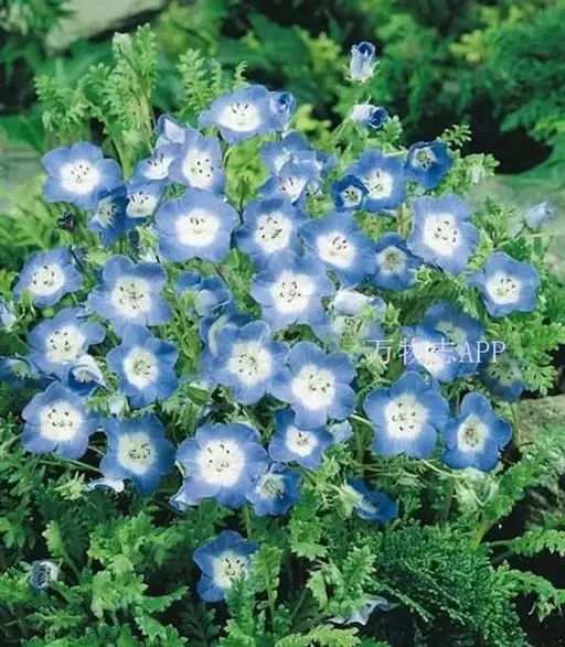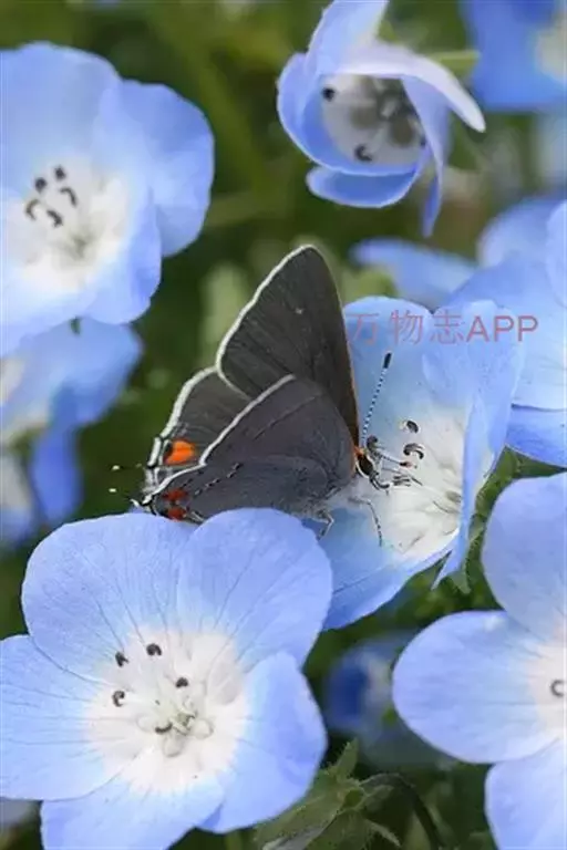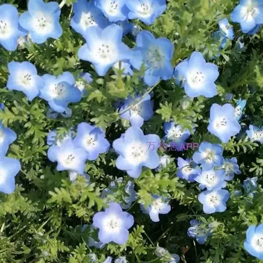 株高约30公分,清澄之紫蓝色花、中心白色。耐寒性强,即使下霜的地区也可越冬,适合盆钵、花坛栽植。在日本,粉蝶花对其国人已不陌生,且受当地人们普遍种植,论花色、论花型、论植株型态,都是非常好的盆栽植物。在台湾平地,因夏季气候炎热,生长势较差,以致开花会受影响。9~10月是最佳的播种期,翌年4~5月开花,发芽适温约15~22℃,生育温度5~28℃,比较适合在冷凉的天候下栽植。若想于春天播种,则在春末夏初天气渐渐炎热之际,将其置于遮荫且凉爽通风,有明亮光线的地方,注意浇水,避免过于干旱,那么也是可以在夏天看到她开花。
