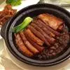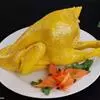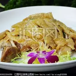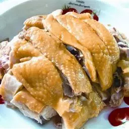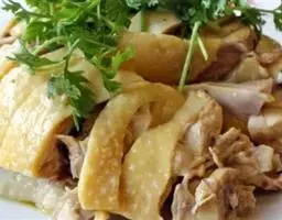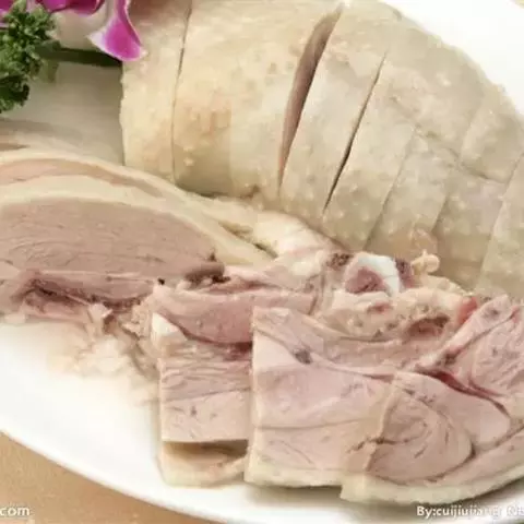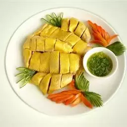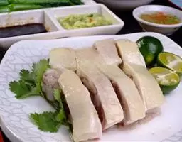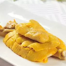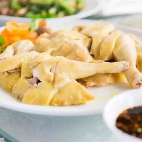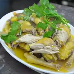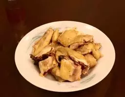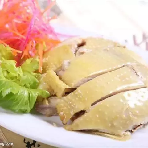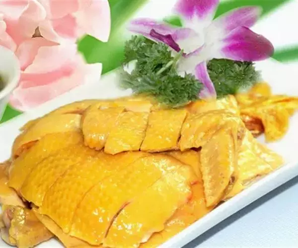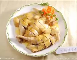 1. 白斩鸡又称白切鸡、三黄油鸡,是粤菜传统名菜,多作为宴席冷盘,供佐酒之用。白斩鸡始于清代的民间酒店,因烹鸡时不加调味白煮而成,食用时随吃随斩,故称“白斩鸡”。又因其用料,广东省清远市阳山县出品的三黄鸡(脚黄、皮黄、嘴黄),故又称三黄油鸡。后来广东各饭店和熟食店都经营“白斩鸡”,不仅用料精细,而且还用熬熟的“虾子酱油”同鸡一起上桌蘸食。此菜色泽金黄,皮脆肉嫩,滋味异常鲜美,久吃不厌 。
