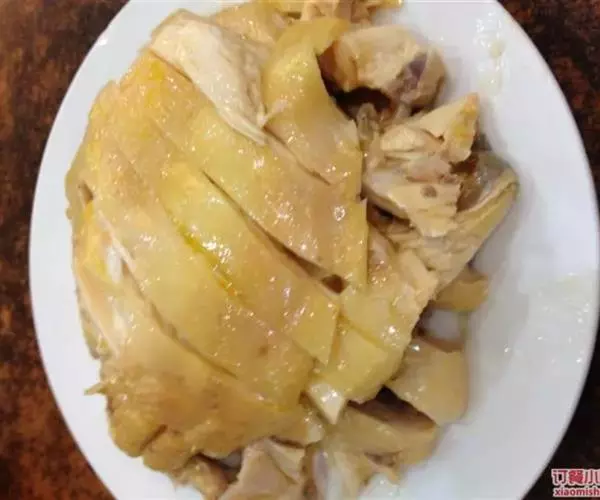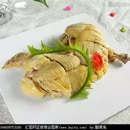 ②将鸡洗净,放水中净煮,中间提出两次,倒出腔中的水,以保持内外温 准备工作 度一致。约浸十五分钟至熟,用铁钩勾起,再放在冷开水中浸没冷却,并洗去绒毛、黄衣,随即捞起。焖着十分钟,晾干表皮,扫上熟花生油,斩成小块,盛入碟中,摆成鸡形。以斩出来的鸡块骨髓带血为适,斩件后,点着调料吃。