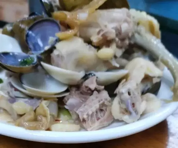 当年的仔母鸡 ,配料:葱姜和蒜蓉