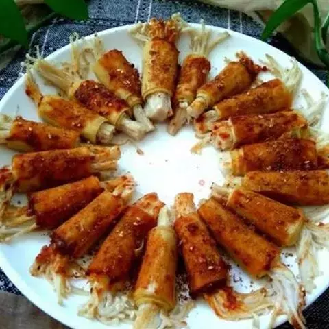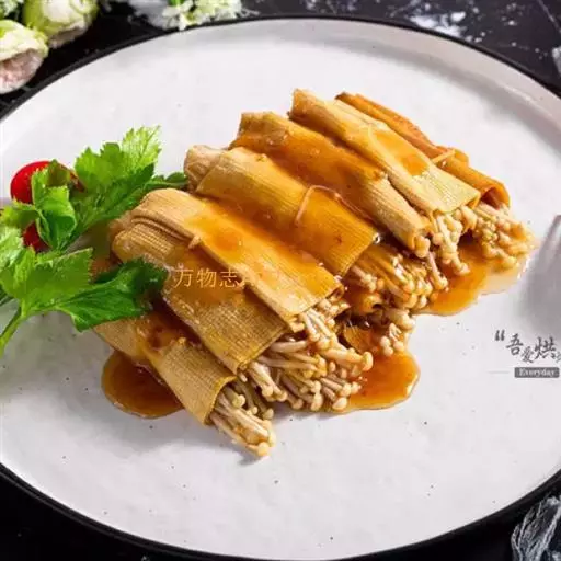 豆腐250 克, 水发玉兰片50 克,豆腐皮1 张,淀粉50 克,