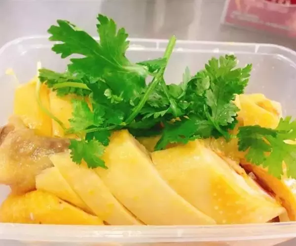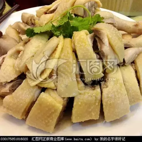 原料:嫩油鸡1只(1.25千克)、香菜5克。 白斩鸡