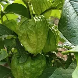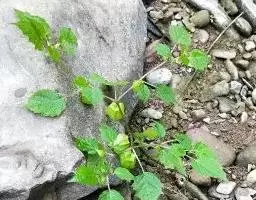 2、挂金灯形态与酸浆原种相似,主要区别为:花梗几无毛或仅有稀疏毛,花萼除裂片毛较密外筒部稀疏;果成熟后果梗及果萼光滑无毛。