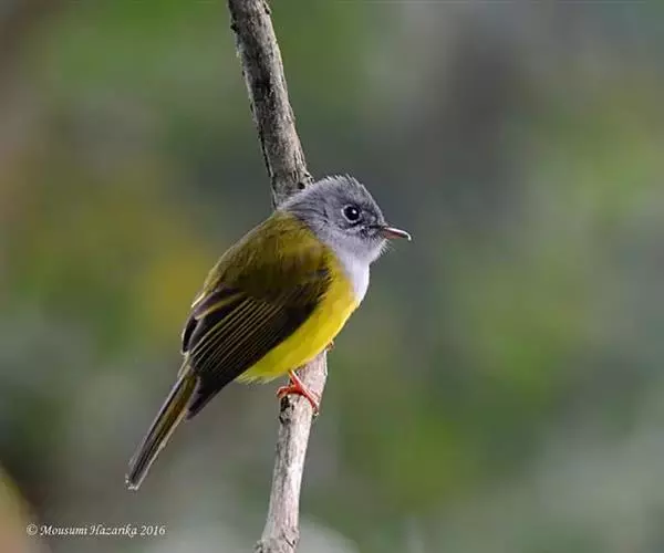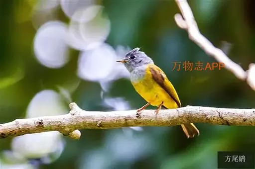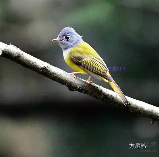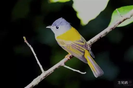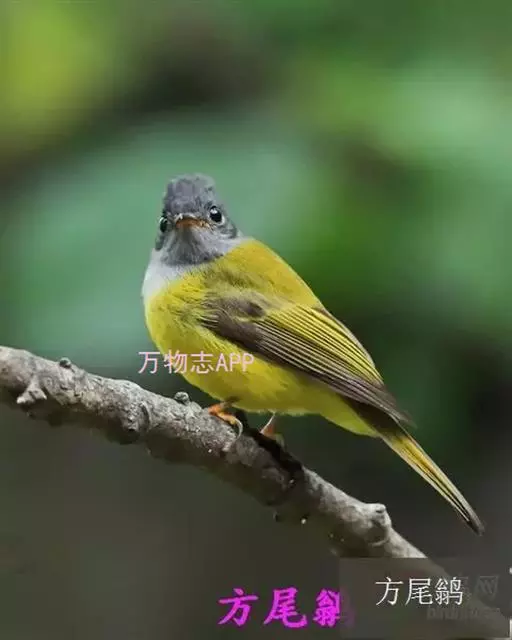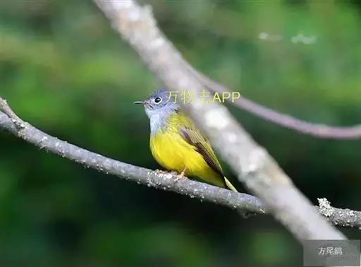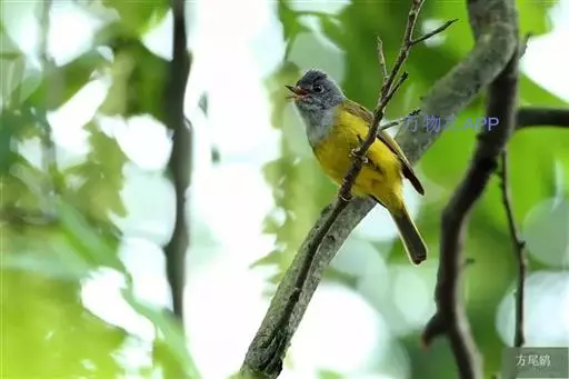 方尾鹟(学名:Culicicapa ceylonensis):体重6-11克,体长102-130毫米。是一种体型小而独具特色的鹟。头偏灰,略具羽冠,嘴扁平,嘴基宽阔几成等边三角形,嘴须发达长而多,几达嘴端口;头顶至后颈黑灰色,背橄榄绿色,两翅和尾黑灰色,翅上覆羽和飞羽羽缘橄榄黄绿色。喉、胸灰色,其余下体黄色。虹膜褐色,嘴上嘴黑色,下嘴角质色,脚黄褐色。