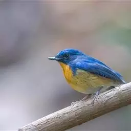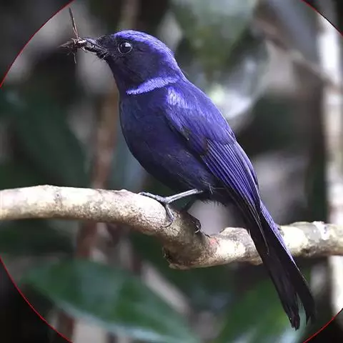 山蓝仙鹟:小型鸟类,体长13-15厘米。雄鸟额基和眼先黑色,颏橙棕色,仅颏尖为蓝黑色,…