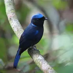 大仙鹟:体重34-38克,体长20-2厘米。是一种体型较大的深色鹟。雄鸟上体蓝色,…