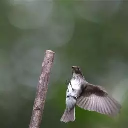 乌鹟:体重9-15克,体长12-14厘米。是一种体型略小的烟灰色鹟。上体深灰,翼上具不明显皮黄色斑纹,…
