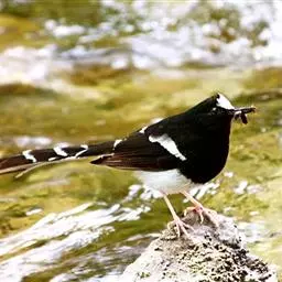 白顶溪鸲是雀形目鸫科的鸟类,体长约19厘米,是黑色及栗色溪鸲。头顶及颈背白色,腰、尾基部及腹部栗色…