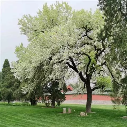 白梨蔷薇科,苹果亚科,梨属高5-8米乔木,树冠开展;二年生枝紫褐色,叶片卵形或椭圆卵形,…
