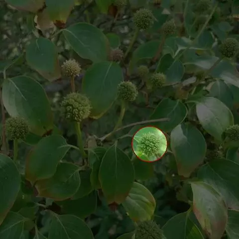 圆锥花序开展,长20-60厘米,具3-7个侧枝,每个侧枝上着生7-11个雄性头状花序和1-2个雌性头状花序,主轴顶端通常具3-5个雄性头状花序,或更多,无雌性头状花序;花期雄性头状花序呈球形,直径约10毫米;雄花花被片匙形,膜质,先端浅裂,早落,花丝长约3毫米,丝状,弯曲,褐色,花药近倒圆锥形,长约1-1.2毫米,宽约0.5毫米;雌花花被长5-7毫米,宽约1-1.5毫米,着生于子房基部,宿存,柱头分叉或否,长约3-4毫米,向上渐尖,花柱长约1.5毫米,子房无柄。果实长6-9毫米,倒圆锥形,上部通常膨大呈冠状,具棱,褐色。花果期5-10月。