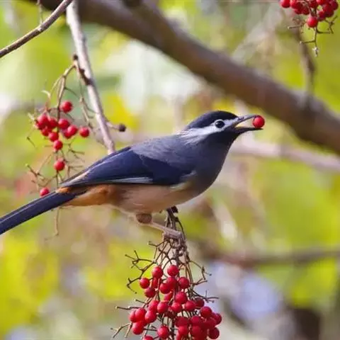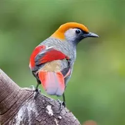 银耳相思鸟小型鸟类,体长14~18厘米。头顶黑色,耳羽银灰色,前额橙黄色;外侧飞羽橙黄色,基部朱红色,…