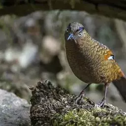 蓝翅噪鹛:噪鹛科、彩翼噪鹛属动物。中型鸟类,体长22-25厘米。上体棕橄榄褐色密被黑色鳞状斑,…