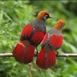 赤尾噪鹛中型鸟类,体长24~28厘米。头顶至后颈红棕色,两翅和尾鲜红色,眼先、眉纹、颊、颏和喉黑色,…