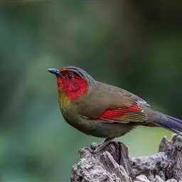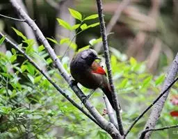 红翅薮鹛是噪眉科、薮鹛属中型鸟类,体长21-24厘米。头顶灰褐色,头侧和颈侧赤红色,上体橄榄褐色,…