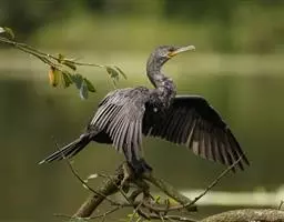 黑颈鸬鹚,中型水鸟,体长50~51厘米。繁殖期通体黑色,缀有深蓝色和蓝绿色光泽;肩、内侧次级飞羽及…