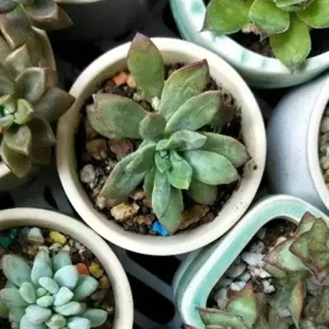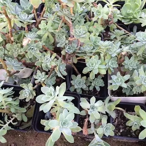 吉娃莲,景天科拟石莲花属,别名:吉娃娃,吉娃莲,植株小型,无茎的莲座叶盘非常紧凑。卵形叶较厚,带小尖,…