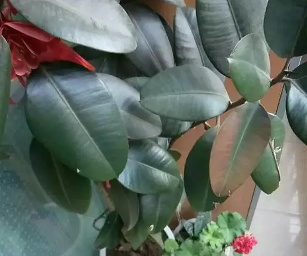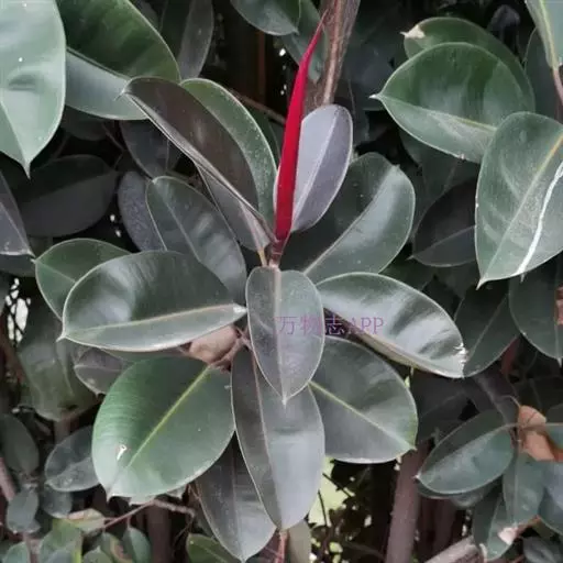 印度榕,别名橡皮树,桑科榕属多年生常绿乔木植物。株高30米;树皮灰白色,平滑;叶厚革质,…