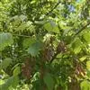 花杂性,雄花与两性花同株,常生成仅长6-7 厘米的短圆锥花序,总花梗长约3 厘米,顶生于着叶的小枝上,叶已长大后花始开放;萼片4,黄绿色,卵状长圆形,先端钝形,长约2.5,毫米;花瓣4,淡黄白色,倒卵形,长约2毫米;雄蕊8,花丝无毛;花盘微被长柔毛,微裂,位于雄蕊外侧;子房密被白色的疏柔手,花柱无毛,2 裂,柱头反卷;花梗细瘦,长5-8毫米。翅果嫩时淡红色,成熟时淡黄色;小坚果凸起,脉纹显著,直径约6毫米;翅宽8-10毫米,连同小坚果长2-2.5厘米,张开成钝角。花期4月,果期9月。