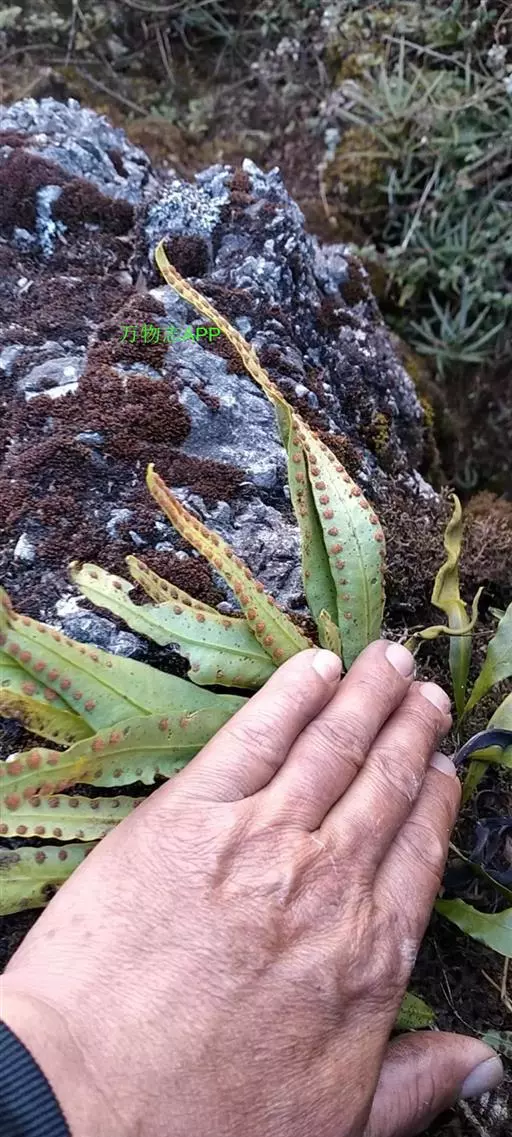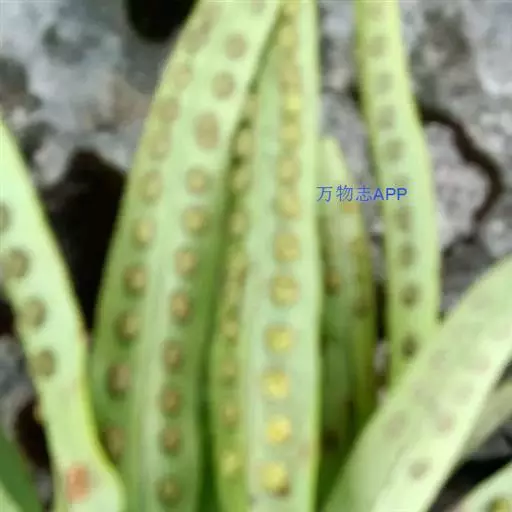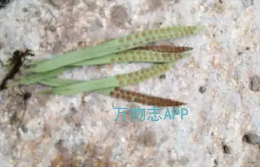 植株高约8~20厘米。根状茎横走,密被披针形鳞片;鳞片褐棕色,大部分不透明,仅叶边1~2行网眼透明,具锯齿。叶柄长1~3厘米,禾秆色;叶片线状披针形,或狭披针形,中部最宽0. 5~1. 3厘米,渐尖头,基部渐变狭并下延,干后黄绿色至淡黄绿色,或淡绿色至褐色,纸质。主脉上下均隆起,小脉不见。孢子囊群圆形或椭圆形,彼此相距较近,成熟后扩展几密接,幼时被圆形褐棕色的隔丝覆盖。