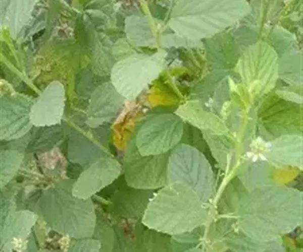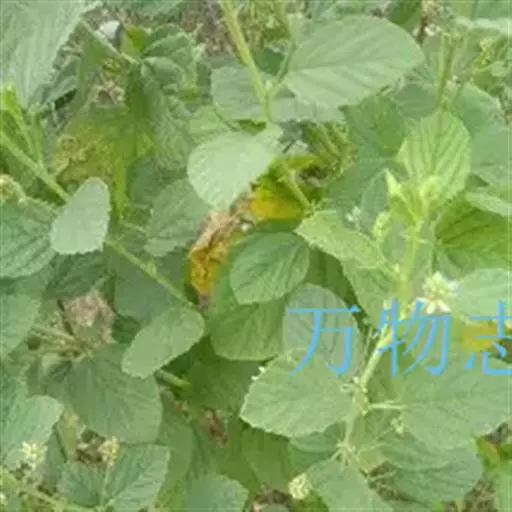 一年生直立草本,高60-150厘米。枝坚硬,疏被白色绒毛,有明显腺点。叶为单叶,有时有1片长约1-2厘米的侧生小叶;托叶镰形,长7-8毫米;叶柄长2-4.5厘米,有腺点;小叶柄长2-3毫米,被白色绒毛;叶宽卵形,长4.5-9厘米,宽3-6厘米,先端钝或锐尖,基部圆形或心形,边缘有粗而不规则的锯齿,质地坚韧,两面有明显黑色腺点,被疏毛或近无毛。