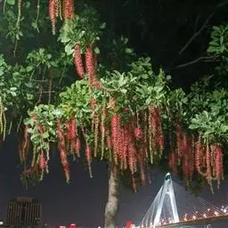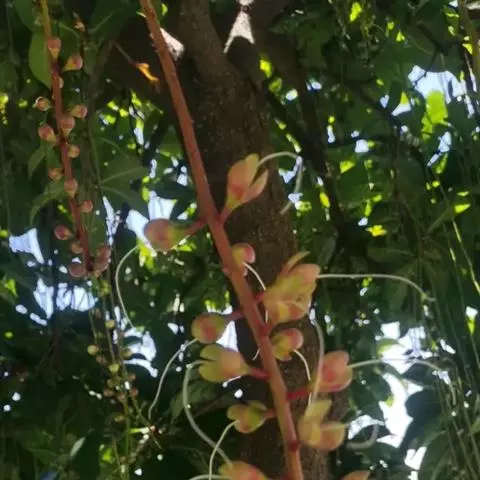 梭果玉蕊(Barringtonia fusicarpa Hu)是双子叶植物纲、玉蕊科、玉蕊属常绿大乔木,是我国特有的植物,产于云南南部和东南部。花白色或粉红色,从老枝上垂下来的穗状花序,长达0.8-1米,花开时散发出淡淡的清香,吸引着蛾类等昆虫前来受粉,但花的生命只有短短的几小时,天亮时花便凋谢。果实梭形,花果期5-7月。