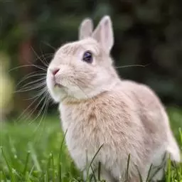 家兔(学名:Oryctolagus cuniculus f. domesticus):是由一种野生的穴兔经过驯化饲养而成的。大型的家兔如公羊兔,体重可达8千克。而体型较小的荷兰侏儒兔,成年时的体重还不到1千克。上唇分裂,称为兔唇,因而常暴露出上门齿。前肢短,肘部向后弯曲,前爪有5趾。后肢长而强壮,膝部向前弯曲,后爪4趾,第一趾退化,善于奔跑和跳跃。耳朵长,尾巴短。全身被毛,体表的毛光滑柔软,有很好的保温作用。