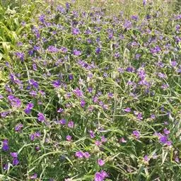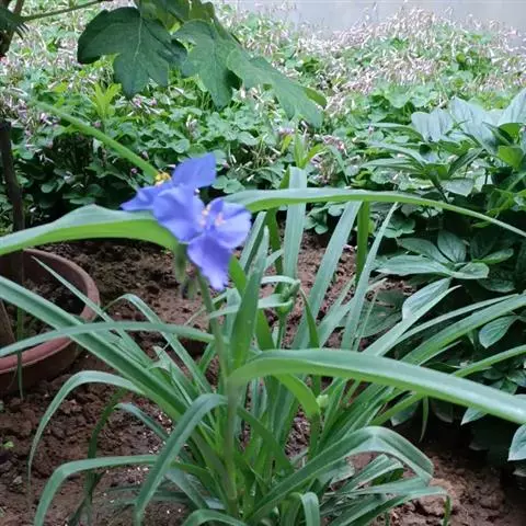 2. 露地应用:无毛紫露草花艳,花期特长,耐不同类型土壤,较耐瘠薄,管理上不要求太精细。繁殖系数高,又能露地越冬,适应性广,可在我国的东北、华北、华中及华东地区的城乡绿化中大力推广应用。在绿化中可布置花坛,也可成片或成条栽植,围成圆形、方形或其它形状,中心种植灌木、小乔木或其它花卉。