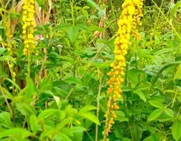 又名:响铃草(《滇南本草》),荷猪草,黄花野百合 ,多年生草本,根长达60厘米以上。为豆科植物假地蓝的全草或带根全草。生山坡疏林及荒山草地。海拔400-1000米。我国普遍有分布,而以西南为多见。药材,敛肺气,补脾肾,利小便,消肿毒。可治久咳痰血,耳鸣,耳聋,梦遗,慢性肾炎,膀胱炎,肾结石,扁桃腺炎,淋巴腺炎,疔毒,恶疮等。