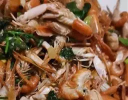 3. 平底锅烧热,入培根粒翻炒至出油。再加入彩椒粒稍微翻炒几下。