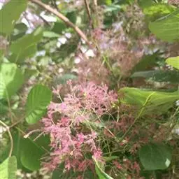 毛黄栌(学名:Cotinus coggygria Scop. var. pubescens Engl.)是漆树科,黄栌属黄栌的变种,灌木,高可达5米。叶柄短,叶多为阔椭圆形,稀圆形,叶背、尤其沿脉上和叶柄密被柔毛,圆锥花序,无毛或近无毛,花杂性,花萼无毛,裂片卵状三角形,花瓣卵形或卵状披针形,花药卵形,与花丝等长,花盘紫褐色;子房近球形,果肾形,无毛。