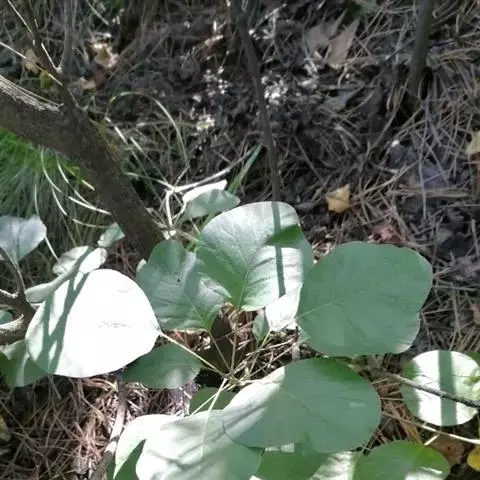 毛黄栌 灌木,高3-5米。叶倒卵形或卵圆形,长3-8厘米,宽2.5-6厘米,先端圆形或微凹,基部圆形或阔楔形,全缘,两面或尤其叶背显著被灰色柔毛,侧脉6-11对,先端常叉开;叶柄短。叶多为阔椭圆形,稀圆形,叶背、尤其沿脉上和叶柄密被柔毛。