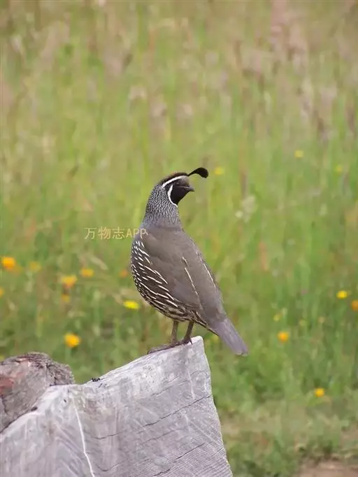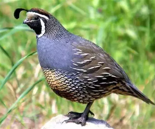 代表物种:普通鹌鹑雄性成鸟(夏羽):额部几全为栗黄色头顶、枕部和后颈黑褐色,羽端深栗黄色;中央具一条狭窄的白色冠纹。眉纹白色,从前额后达颈部;眼圈,眼先和颊部均赤褐色;耳羽栗褐色。上背为浅的黄栗色,具黄白色羽干纹;下背至尾上覆羽黑褐色,多具两端尖的浅黄色羽干纹;内外翈具黄褐色波状细横斑;肩羽亦然。两翅大部为带淡黄的橄榄色,杂以黄白色横斑;第一初级飞羽外翈狭,缘以淡黄色,其它初级飞羽的外翈均具浅赤褐色波状横斑;次级飞羽的内外翈亦具同色横斑,向内转浅。尾羽黑褐色,白嘴基越眼而达颈侧;额头侧及颏具白而略带浅黄色的羽干纹和羽缘,并具赤褐色横斑。颏、喉和颈的前部赤褐色,颊部和眼先的赤褐色连在一起;从颈部开始,伸出一个黑褐宽条,沿中线至喉部中央,扩大成黑褐色锚状纹,两侧向上延伸,几与耳羽连接。上胸灰白沾栗,羽干白色;颈侧和胸侧黑褐,杂以栗褐色,并具明显的白色羽干纹;两胁栗褐,杂以黑色,具更宽的白色羽干纹;下胸以至尾下覆羽灰白。
