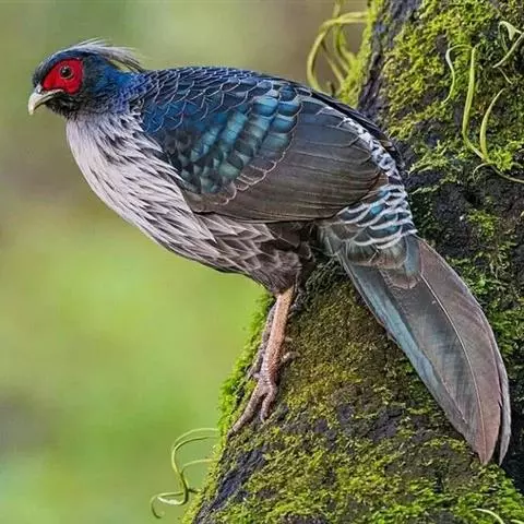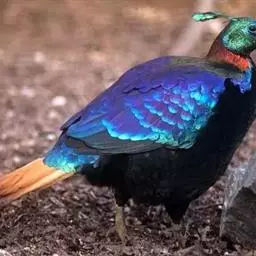 黑长尾雉大型鸡类,体长53~88厘米。雄较雌大。雄鸟通体紫蓝色,脸鲜红色,翅上有一条显著的白色翅斑…