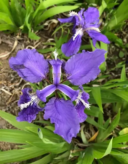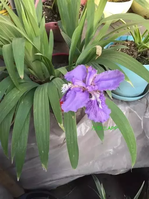大扁竹兰扇形鸢尾,多年生草本,根茎横生,粗壮,黄白色,节明显;叶黄绿色,集生茎顶,叶片宽剑形,花蓝…