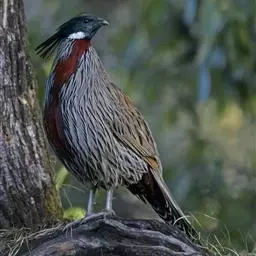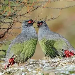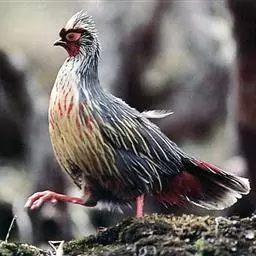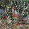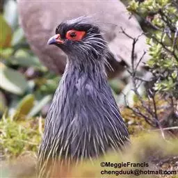 血雉雉科血雉属鸟类,别名血鸡、松花鸡,血雉的雄鸟大覆羽、尾下覆羽、尾上覆羽、脚、头侧、腊膜为红色,…