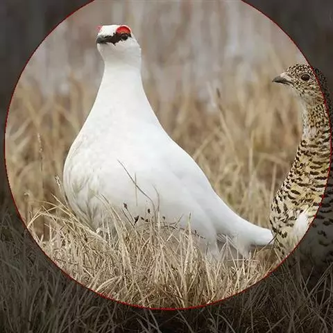 柳雷鸟(学名:Lagopus lagopus):有17个亚种,在松鸡家族中是一种中等体型的鸟,体重400-810克,体长380-410毫米。翅短圆,除第1枚外,初级飞羽的基部均有缺刻;尾羽16枚,尾长适中,末端稍圆,中央尾羽较其他尾羽稍高;腋羽很长;雌雄的冬羽大都白色;跗蹠被羽到趾,夏季趾均裸露,仅具短而不规则的毛。雌雄的冬羽均为白色,仅尾羽黑色,飞羽的羽干亦黑,跗蹠被羽到趾。其他季节体羽多变,但大都为栗棕色或棕黄色,具有各种暗色斑纹及斑点。